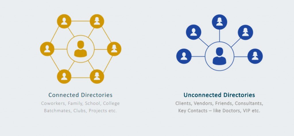 Social Network provide dynamic updates on the people known to you socially or professionally but the userbase remains incomplete without any contextual grouping. They are also not suitable for sharing contact info.